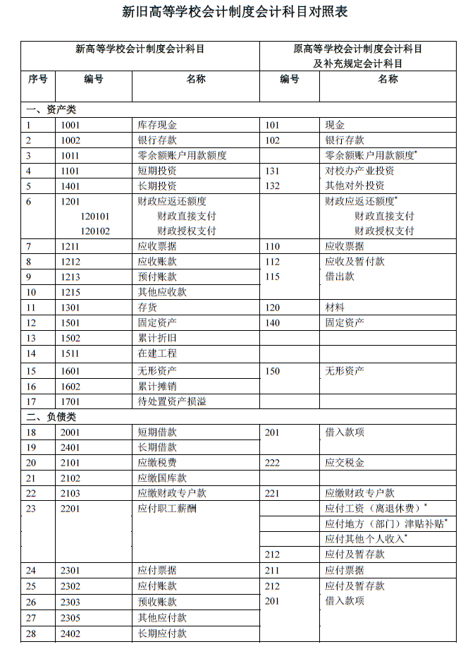 新制度未设置“应付及暂存款”科目,但设置了“应付账款”、“预收账款”、“其他应付款”、“长期应付款”科目,该 4 个科目的核算内容与原账中上述科目的核算内容基本相同,但不包括高等学校为职工应付的社会保险费和住房公积金(该部分内容由新制度下“应付职工薪酬”科目核算)。转账时,应当对原账中“应付及暂存款”科目的余额进行分析:将其中属于新制度规定应付账款的余额转入新账中“应付账款”科目;将其中属于新制度规定预收账款的余额转入新账中“预收账款”科目;将其中属于新制度规定长期应付款的余额转入新账中“长期应付款”科目;将其中属于应付的社会保险费和住房公积金的余额转入新账中“应付职工薪酬”科目;将剩余余额转入新账中“其他应付款”科目。