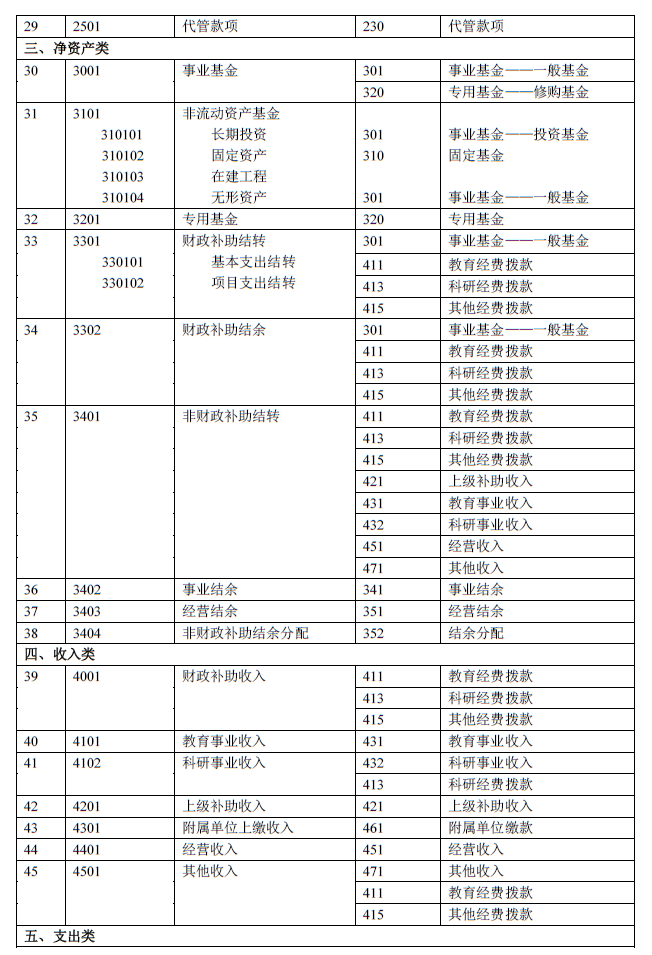 3.“附属单位缴款”、“拨出经费”、“教育事业支出”、“科研事业支出”、“经营支出”、“上缴上级支出”、“对附属单位补助”、“结转自筹基建”科目。原账中上述科目年末无余额,不需进行转账处理。自 2014年 1 月 1 日起,应当按照新制度设置收入支出类科目并进行账务处理。