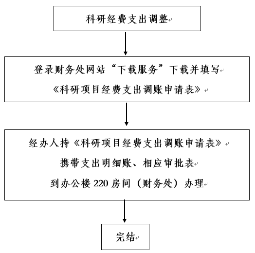 1. 如涉及设备费调账,需打印两份《科研项目经费支出调账申请表》,一份留设备管理部门,一份留财务处。
